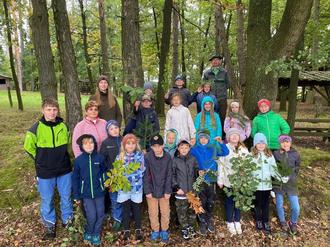 Einen ganz besonderen Schultag erlebte unsere vierte Klasse am 24. September 2025. Zum „Matheunterricht im Wald“ verließen wir das Schulgebäude und wanderten in den Wald des Nachbarortes Köthnitz. Dort wartete schon Herr Engler mit einem kleinen Team vom Thüringer Forstamt Neustadt/Orla.