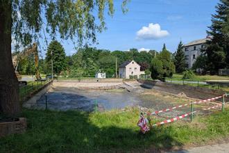 Die Situation am Baubeginn Mitte Juni: Marode Teichmauern und Unmengen an Teichschlamm warten auf ihre Beseitigung.