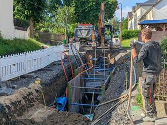 Die zusätzlichen Leistungen der Gemeinde, aber auch schwierige Baugrundbedingungen mit mehr Fels als geplant und vorhandene zu querende und teils umzuverlegende Leitungen führten zu einer Verlängerung der Bauzeit um zwei Monate. Gerade die Leistungen des Zweckverbands, der 660 Meter Regen- und Schmutzwasserkanal, sowie 570 Meter Trinkwasserleitung verlegte, waren sehr aufwendig. Die Verlegetiefe betrug dabei oft mehr als drei Meter.