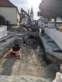 Noch bevor mit dem Gehweg begonnen werden konnte, mussten Kanäle und Elektrokabel im Untergrund verlegt werden, wie hier im August.