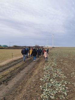 Nach einer kleinen Stärkung auf dem Schulgelände machten sich interessierte Familien und LehrerInnen gemeinsam auf den Weg in Richtung Holzmühle. Es dauerte nicht lange, bis die Teerstraße gegen einen Feldweg eingetauscht wurde, und nun jeder sein Schuhwerk auf Matschtauglichkeit prüfen konnte. Entlang des Marktsteigs zog man von hinten her, in die Stallanlage der Oettersdorfer Landwirtschaftlichen AG ein.