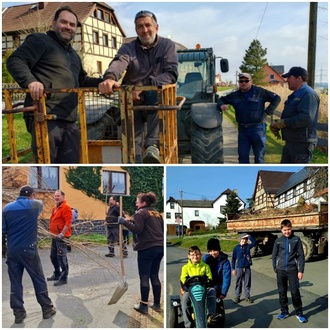 Groß und Klein, Alt und Jung packten mit eigenen Gerätschaften und ganzen Traktor-Gespannen von frühmorgens bis in den Nachmittag an. In Burkersdorf wurde der Spielplatz vom Unkraut befreit und Schilf aus dem Teich entfernt, in Tegau eine Raufe gestrichen und in beiden Dörfern wurden Bäume ausgeschnitten, Abflussrinnen und Schächte gesäubert sowie Wege und Grünanlagen vom Laub befreit.