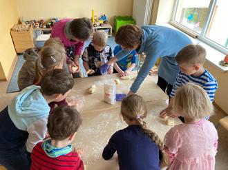 Die Kinder der Fuchsgruppe freuen sich jedes Mal riesig, wenn sie hören, dass Anette Tens wieder zu Besuch kommt. Gemeinsam wurden in der Weihnachtszeit leckere Pfefferkuchen gebacken, zu Ostern duftende Hefekränze gezaubert und viele weitere tolle Leckereien hergestellt.