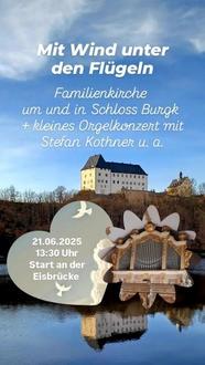 | > | Sonnabend, 21. 06. 2025, 13.30 Uhr bis 18.30 Uhr Familien-Kirche in Burgk rund um und im Schloß Burgk. (zur Planung bitte um Voranmeldung bis 10.06.2025 | |