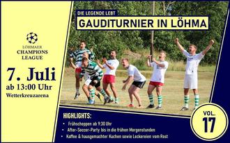 Neben der Heimmannschaft des SV ‚Güldequelle‘ Löhma dürfen sich alle Zuschauer auch bei der 17. Auflage auf eine Mischung aus alten Bekannten - wie Torpedo Rödersdorf, die TSG Für 18,99 besoffen sein oder Dauerbrenner FC Anti-Andy - und neuen Gesichtern, z. B. einer Vertretung aus Dröswein, freuen. Besonders aber das Feeling, das auf dem Fußballplatz oberhalb der Löhmaer Dächer vermittelt wird, ist wohl einmalig und brachte dem Event vor einigen Jahren von einem Dauergast den Namen Champions League der Gauditurniere ein.
