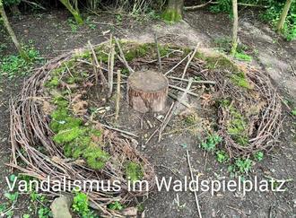 Wie die meisten von Euch vielleicht schon erfahren haben, randalierten Unbekannte im Projekt der Waldknirpse des Kindergarten Oettersdorf und zerstörten das von Eltern mühevoll errichtete Waldsofa, knickten Bäume um, zertrampelten kleine Setzlinge und ließen ihrer blinden Zerstörungswut freien Lauf. Fassungslos entdeckten die kleinen Waldknirpse am 03.07.24 vormittags diese Schandtat und die KITA-Leitung informierte mich umgehend. Was geht nur in den Köpfen der Täter vor? Luftleerer Raum, das ist das einzige was mir dazu einfällt. Sind die Täter nicht auch mal klein gewesen und wären froh darüber, so eine schöne Anlage nutzen zu können. Es wurde Anzeige erstattet und wir hoffen, dass vielleicht auch mit Eurer Hilfe die Täter ermittelt werden können. Zu allem Überfluss entleerten die Täter noch ihren Darm, was wiederum bei den Ermittlungen mittels einer DNA-Analyse hilfreich sein könnte. Kopfschütteln und Unverständnis ist alles was einem dazu einfällt.