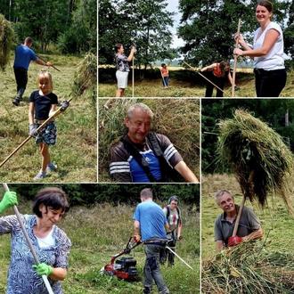 Pflege bei Feuchtwiesen, wie auch bei unserer Maßnahme in Plothen, heißt eine schonende Mahd mit Balkenmäher und / oder Sense und Freischneider. Das Gras wurde danach vollständig von der ca. 0,5 ha großen Fläche von den fleißigen Helfern verbracht.