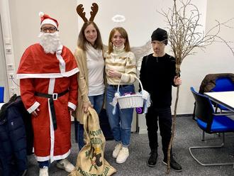 Am Nikolaustag herrschte am KBBZ Dillingen eine festliche Stimmung: Die Religionslehrer Nina Bechtel und Dominik Pohl, unterstützt von zwei weiteren Lehrkräften, hatten eine besondere Überraschung vorbereitet. Als Nikolaus, Engel, Rentier und Knecht Ruprecht verkleidet, zogen sie durch die Klassenräume und verteilten an alle Schülerinnen und Schüler eine Tafel Schokolade.