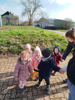 Heute haben wir uns dazu entschieden gemeinsam mit unseren Erzieherinnen spazieren zu gehen. Das Wetter war so schön! Auf unserem Weg haben wir viele Autos, Blumen, Tauben und sogar einen Hund gesehen.