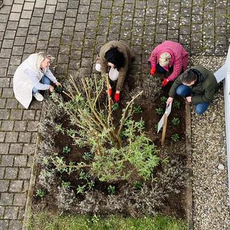 Anlässlich der diesjährigen Vergissmeinnicht-Pflanzaktion im Rahmen der Sensibilisierungskampagne "Demenz geht uns Alle an" haben wir gemeinsam mit Herrn Sauder, Leiter der Landesfachstelle Demenz Saarland, und mit Unterstützung von unseren Mitarbeiterinnen und Mitarbeitern über 100 Vergissmeinnicht gepflanzt. Die kleinen Blümchen sollen auf Menschen mit Demenz und deren Angehörige aufmerksam machen und einmal mehr an das Nichtvergessen erinnern.