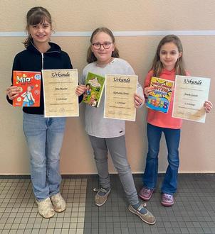 Ein herzlicher Dank gilt allen Kindern, die am diesjährigen Lesedino teilgenommen haben und unserem Förderverein, der den drei Finalisten zu ihrem Erfolg mit einem attraktiven Buchpreis gratuliert hat.