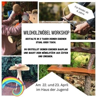 Am Dienstag und Mittwoch 22./23.April 2025 jeweils von 9.00 -12.00 Uhr veranstaltet die Gemeinde Überherrn in Kooperation mit dem Kreisjugendamt Saarlouis und der Referentin Jessica von Leliwa einen Workshop „Wildholzmöbelbau“ für Kinder ab 6 Jahren im Haus der Jugend, Differter Straße 103a.