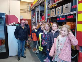 Da konnten wir feststellen, wie schwer diese sind. Matthias und Markus haben uns dann ganz viel über die Feuerwehr erzählt, darüber was sich alles auf einem Feuerwehrauto befindet und wofür es gebraucht wird.