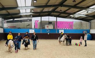 Dort lernten Sie vieles rund um das Thema Pferd. Zuerst machten sie ein Kennenlernspiel und es gab eine Einweisung zu den Regeln in der Reithalle und am Pferd. Immer zwei Kinder waren einem Pony zu geteilt, welches sie zuerst putzen und dann satteln durften. Als nächstes wurde ein gemeinsamer Parcours aufgebaut durch welchen die Ponys zuerst geführt und daraufhin im Wechsel geritten wurden. Hierbei gab es viele Geschicklichkeitsübungen vom Pferd aus zu lösen. Wie zum Beispiel Bälle werfen, kegeln und vieles mehr. Zum Abschluss wurden alle Ponys nochmal abgesattelt und durften zurück auf die Weide. Nachdem der Parcours wieder abgebaut war, fanden alle Zeit für ein gemeinsames Picknick. Vielen Dank an die Eltern für die Muffins, Brezeln und andere Leckereien. Außerdem möchte wir den Eltern danken, die den Ausflug begleitet und die Kinder transportiert haben.