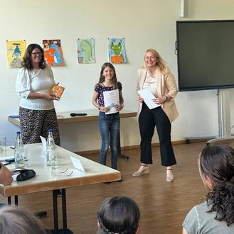 Am 11.06.2025 trafen nun die 13 besten Vorleser:innen beim diesjährigen Landesentscheid in Saarbrücken aufeinander. Nachdem Leenke Schütz bereits erfolgreich beim Regionalentscheid siegte, durfte sie am Mittwoch im Ministerium für Bildung und Kultur gegen weitere starke Konkurrenz antreten und auch dort unsere Schule vertreten. Die Regionalsieger lasen in der ersten Runde ihre geübten Texte vor. Dann ging es in der zweiten Runde mit einem schwierigen, ungeübten Text aus dem Buch „Crazy Family“ weiter. Leenkes Text beinhaltete Ausschnitte in Suaheli, einer Bantusprache aus Ostafrika, die sie souverän vorlas. Sie ließ sich durch nichts beirren und zeigte eine hervorragende Leistung. Für den Landessieg hat es am Ende leider nicht gereicht. Wir dürfen Leenke aber zu einer herausragenden Leistung, welche durch eine Urkunde, einen Büchergutschein und ein Buch belohnt wurde, gratulieren.