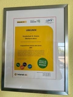 Am 03.07.2024 wurde unserer Grundschule das Siegel „Internet-ABC Schule 2024/25“ verliehen. Somit sind wir ausgezeichnete Internet-ABC-Schule 2024. Der kompetente und bewusste Umgang mit Medien soll an unserer Schule als Schlüsselkompetenz gefördert werden und den Kindern diesbezüglich Grundfähigkeiten und erweitertes Wissen an die Hand gegeben werden.