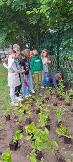 Bei einer gemeinsamen Pflanzaktion mit den Kindern der Klassen 3a und 3b, sowie Vertretern der Kreissparkasse und des Landkreises, wurde der neue Bereich feierlich eingeweiht und liebevoll bepflanzt. Die Kinder waren mit großer Begeisterung dabei – und wir alle sind sehr dankbar und freuen uns riesig über diese tolle Unterstützung!