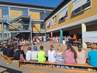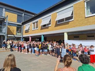 Am Freitag war es dann so weit: Letzter Schultag! Alle Kinder kamen zum letzten Mal für dieses Schuljahr in die Schule und bekamen in der 3. Stunde ihre Zeugnisse. Die Viertklässler jedoch wurden bei einer sehr emotionalen Feier auf dem Schulhof im Beisein ihrer Eltern von der ganzen Schulgemeinschaft würdig verabschiedet und erhielten dort von ihren Klassenlehrerinnen Frau Strohm, Frau Krämer und Frau Schneider ihre Zeugnisse. Den Elternsprecherinnen und Elternsprechern wurde für ihr Engagement in den letzten 4 Jahren ein Dank ausgesprochen und von den Klassenlehrerinnen ein kleines Geschenk überreicht. Herzlichen Dank dem Schulchor für seine passenden Lieder, besonders dem Lied, in dem er stellvertretend für die 4. Klassen ein Lied für die Klassenlehrerinnen sang: „Kinder brauchen kleine Sonnen“. Vielen Dank auch den Klassen 3a (Kiefer) und 3b (Cullmannn) für ihren lustigen Flötenvortrag, den Klassen 2a (Radke),2b (Laudwein) und 2c (Reimsbach) für das tolle Lied „Schule ist mega“ und der Orff-Ag für die Europahymne und ihr bewegtes Lied „Oh when the Saints“. Ein großes Dankeschön den Viertklässlern selber für ihr schönes Programm, für ihre ergreifenden Lieder, und das lustige Stück „Coole Bongo-Disco-Bar“ mit den Boomwhackers und ihr „Shalala“, bei dem sie von Laura Engel (Klavier) und Johan Gläsner (Gitarre) begleitet wurden.
