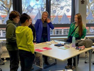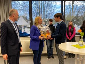 Im Nachgang eines Besuchs im Französischunterricht des Kollegen Romain Schamschula in der Klasse 5.2 betonte die Ministerin die Bedeutung eines modernen Unterrichts, der gerade im Fach Französisch zu niedrigschwelligem Sprechen in der Fremdsprache ermutigen müsse. In Überherrn werde dies auch durch die – nach Corona reaktivierte – Schulpatenschaft mit dem Collège François Rabelais in L’Hôpital ermöglicht. In den Äußerungen Streichert-Clivots wurde deutlich, dass solche schulischen Schwerpunkte, bei denen es zu Kontakten junger Menschen aus Deutschland und Frankreich kommt, ihr eine Herzensangelegenheit sind.