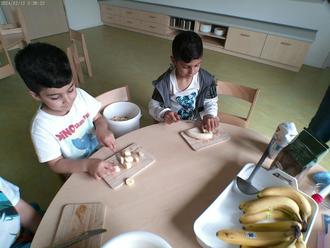 Neben der fairen Schokolade gibt es auch faire Bananen. Aus diesen Bananen haben wir Bananenshake und Bananmuffins hergestellt und gegessen und getrunken.