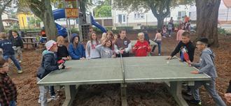 Vielen Dank unserem Förderverein für die Investitionen, dem Bauhof der Gemeinde für die Mithilfe bei der Montage und Sport Schreiner für die Unterstützung bei den Tischtennisschlägern und Bällen.