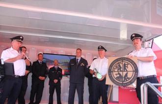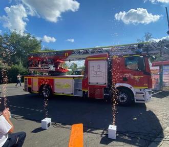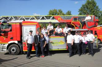 Das Fest begann mit einem Kommers und der Einweihung der neuen DLK (Drehleiter mit Korb), die von den hessischen Kollegen stolz präsentiert wurde.