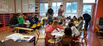Gemeinsam sangen wir Deutsch- Französische Lieder, bastelten Kronen und haben zusammen die Galette de rois gegessen.