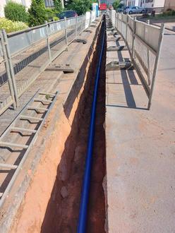 In der „Parkstraße“, im Bereich von Hausnummer 1 bis 25, wurde im Zuge einer Begleitmaßnahme mit der Gemeinde Überherrn auf einer Länge von ca. 200 Metern eine neue Trinkwasserleitung verlegt und die bestehenden 25 Hausanschlüsse erneuert sowie auf die neue Trinkwasserleitung angeschlossen.