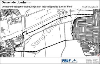 Der Gemeinderat hat am 05.10.2023 in öffentlicher Sitzung die Anpassung des Geltungsbereichs des Vorhabenbezogenen Bebauungsplanes „Industriegebiet Linsler Feld“ mit einem Flächenumgriff von ursprünglich ca. 98 ha mit folgenden Flurstücken: