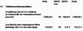 Preisstellung Punkt 5.1 „Trinkwasserhausanschluss“ ab 1. Januar 2025