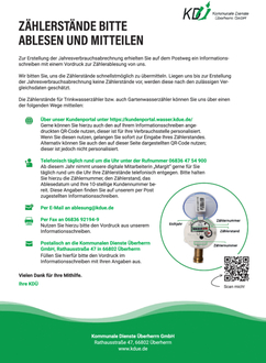 Sie erhielten von uns per Post ein Informationsschreiben mit den von Ihnen abzulesenden Trinkwasserzähler bzw. auch Gartenwasserzähler. Diese Zählerstände bitten wir Sie uns über unser Onlineportal, per Post, Fax, E-Mail oder Telefon mitzuteilen. Weitere Informationen können Sie auch unserer Sonderseite „Zählerstände bitte ablesen und mitteilen“ entnehmen. Die von Ihnen mitgeteilten Zählerstände zur Jahresverbrauchsabrechnung werden auf den 31.12.2024 hochgerechnet. Der auf Ihrem Informationsschreiben angedruckte QR-Code, ist für die Verbrauchsstelle personalisiert. Wenn Sie diesen nutzen, gelangen Sie sofort zur Eingabe Ihres Zählerstandes.