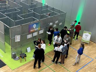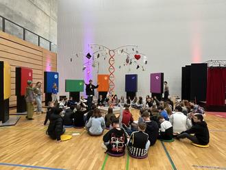 Am 25. und 27. November 2025 besuchten insgesamt vier Klassen der Gemeinschaftsschule Überherrn den rund 500 m² großen Erlebnisparcours „Komm auf Tour – meine Stärken, meine Zukunft“ in der Sporthalle des Uni-Campus Saarbrücken. Der farbenfrohe Parcours unterstützt Jugendliche darin, ihre persönlichen Stärken kennenzulernen und erste Ideen für mögliche berufliche Wege zu entwickeln – spielerisch, praxisnah und mit viel Bewegung.
