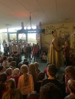 Am 05.12. besuchte der Nikolaus die Grundschule St. Oranna Berus. Alle Schüler saßen im Foyer, als plötzlich ein Glöckchen ertönte. Es wurde ganz still und die Kinder blickten gebannt zur Treppe. Da stand er nun, der Nikolaus. Begrüßt wurde er traditionsgemäß mit einem Nikolauslied. Im Anschluss las er den Klassen aus seinem goldenen Buch vor. Über das Jahr hinweg konnte er viele schöne Dinge beobachten, für die er die Kinder nun lobte. Er ließ es sich aber auch nicht nehmen, ein paar gut gemeinte Ratschläge zu verteilen. Die Klassen dankten im Anschluss dem Nikolaus mit Beiträgen wie Gedichten, Tänzen, einem Lied und einem Sprechgesang für sein Kommen. Zum Abschluss gab es dann noch eine Überraschung: Hausaufgabenfrei für die ganze Schule und einen leckeren Weckmann von der Gemeinde. Herzlichen Dank unserer Bürgermeisterin dafür!
