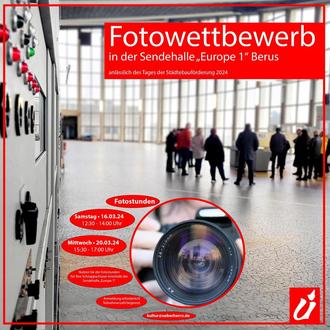Zum Tag der Städtebauförderung 2024 möchte das Kulturamt der Gemeinde Überherrn die Sendehalle "Europe 1" in Berus besonders in Szene setzen. Dazu laden wir insbesondere Hobbyfotografen ein, innerhalb der Sendehalle zu den genannten Terminen Fotos zu machen und pro Fotograf ein Foto (inkl. Abgabe der Fotorechte an die Gemeinde) einzureichen. Über die Fotos wird anschließend digital und analog abgestimmt. Alle eingereichten Fotos werden am 4. Mai 2024, dem Tag der Städtebauförderung, in einem Kurzvideo auf den Online-Plattformen der Gemeinde zu sehen sein und die drei meistgewählten Fotos werden bekannt gegeben.