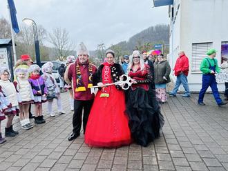 Prinzessin Tanja I. und Prinz Alexander I. übernahmen am Rathaussturm die Leitung der Gemeindeverwaltung und sorgten für närrisches Treiben bis in die späten Stunden im Überherrner Rathaus. Hier bedanken wir uns bei allen, die diese Veranstaltung organisiert und ausgeführt haben. Vor allem ein großes Dankeschön an die Bäckerei Becker aus Differten (Inhaber Kai-Uwe Speicher) für die großzügige Berlinerspende. Klein und Groß haben die süße Leckerei sehr genossen!
