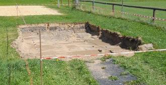 Beginn der Arbeiten an der Sprunggrube und der Laufbahn auf dem Sportplatz Lehesten