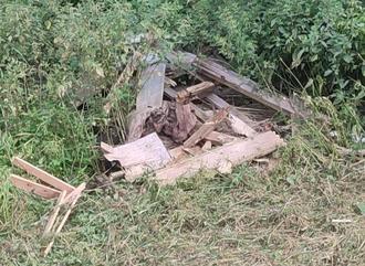 Fotos zeigen in Mulcher eingedrehten alten Schlauch und Holzablagerungen. Festgestellt bei Arbeiten mit dem Mulcher in Brennersgrün. Fotos: Steinbach, Bauhof Lehesten