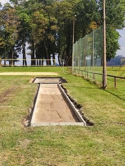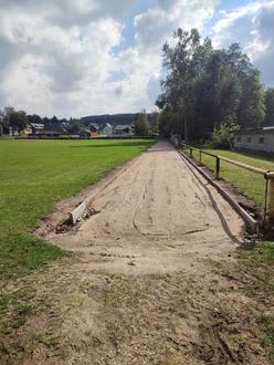 Weiterführung der Arbeiten an der Sprunggrube und der Laufbahn auf dem Sportplatz Lehesten