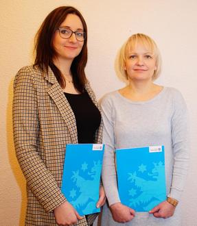 Die Mitarbeiterinnen der Verwaltungsgemeinschaft Frau Anika Kleine (li.) und Frau Nancy Rosenbusch (re.) haben die Fortbildungsprüfung zur Verwaltungsfachwirtin erfolgreich abgeschlossen. Die Prüfung war der Abschluss des 4-jährigen berufsbegleitenden Fortbildungslehrgang II an der Thüringer Verwaltungsschule in Weimar.