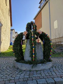 Dann möchten wir uns bei dem Probstzellaer Bauhof sowie bei allen beteiligten Vereinen und fleißigen Eltern bedanken. Sie nahmen sich Zeit die Osterkrone mit zu binden und aufzustellen.