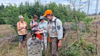 Revierförster Hans Leeder am historischen Grenzstein