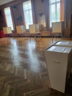 Bild zeigt Wahllokal in Lehesten. Foto: Vockeroth