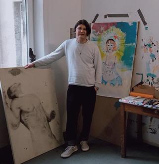 Robin Gunawan wurde 1982 in Krefeld/NRW geboren und verbrachte seine Kindheit und Jugend seit seinem 5. Lebensjahr in Jakarta/Indonesien. Mit 20 Jahren ging er nach Berlin, lernte die deutsche Sprache und bildete sich vor Ort in Malerei und Modedesign weiter. Ab dem Jahr 2010 studierte er Freie Malerei und Grafik an der Akademie der Bildenden Künste in Hannover, schloss das Studium sehr erfolgreich ab und verbrachte anschießend einige Jahre in Italien, um die italienische Sprache, Kunst und Kultur kennenzulernen, was sich auch in seinen Arbeiten widerspiegelt. Nach dieser ausgiebigen Auslandserfahrung zog es ihn im Jahr 2019 wieder nach Deutschland, und er entschloss sich, zu seinen bereits in Pößneck lebenden Eltern zu ziehen, denn im Haus gibt es genügend Platz für ein eigenes Atelier. Man nimmt es ihm ab, wenn er strahlend darüber spricht, dass es ihm hier in Pößneck sehr gut gefällt und er sich angekommen und zu Hause fühlt. Ein Blick in den Himmel von Pößneck - eines seiner Großformate in der Ausstellung - offenbart all dies.