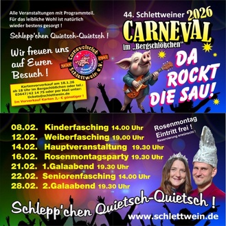 Karten für den Weiberfasching am 12.02.26 um 19 Uhr im Bergschlösschen Schlettwein sind an folgenden Vorverkaufsstellen erhältlich:
