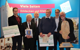Im Rahmen des Neujahrsempfangs wurde auch der Dr.-Eduard-Weißer-Preis verliehen - und zwar gleich dreimal. Denn die Initiatoren nutzten die Gelegenheit, um nicht nur den Preis für das Jahr 2023 zu vergeben, sondern auch die Verleihungen für 2021 und 2022 nachzuholen. So erhielten die Altenburgfreunde im Verein für Heimatgeschichte rückwirkend für das Jahr 2021 den von der Pharmachem Pößneck GmbH & Co. KG gestifteten Preis. Den Altenburgfreunden ist es zu verdanken, dass das Zechsteinriff Altenburg regelmäßig gepflegt wird und wieder ein beliebtes Ausflugsziel für Pößnecker jeden Alters ist. Otto Weiß und Rolf Bräutigam von den Altenburgfreunden nahmen die Ehrung stellvertretend entgegen.