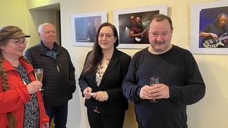 Fotograf Mario Keim neben Kulturamtsleiterin Dr. Maja Brodrecht (v.r.) u. Besuchern der Ausstellungseröffnung