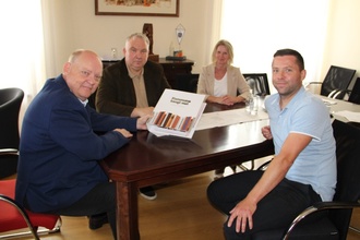 Prof. Dr. Thomas Ley, Leiter der Geschäftsstelle des Landespräventionsrates Thüringen (LPR), hat den Beratungsordner offiziell an Pößnecks Bürgermeister Michael Modde übergeben. Entwickelt wurde der Handlungsleitfaden in einer länderübergreifenden Zusammenarbeit vom Landespräventionsrat Thüringen, der Stiftung Deutsches Forum Kriminalprävention sowie weiteren Landespräventionsräten.