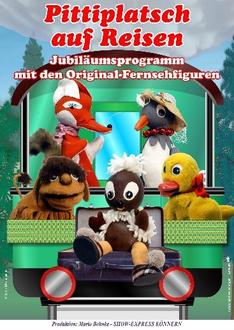 Zu aller Freude treibt er nach wie vor seinen Unfug. Nicht nur auf dem Bildschirm, sondern auch auf Tournee. Sein Kopf ist voller verrückter Ideen. Er wundert sich über alles, was er nicht kennt mit „Ach du meine Nase“, er ist ein bisschen vorlaut, teils frech aber nicht böse, ist am Ende doch einsichtig und dann wieder der liebe Pittiplatsch. Mit einem ausrangierten Eisenbahnwaggon geht’s in seiner Bühnenshow auf Reisen. Zu den Fahrgästen zählen u. a. Schnatterinchen, Herr Fuchs & Frau Elster (sie haben versprochen, sich nicht zu zanken), Mauz & Hoppel, der Mischka-Bär, Moppi und natürlich Pittiplatsch.