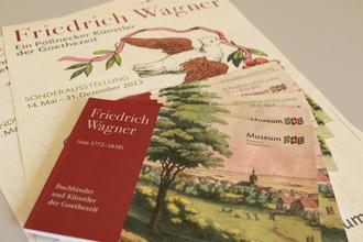 Im Museum642 - Pößnecker Stadtgeschichte kann noch bis zum 31.12.2023 die Sonderschau "Friedrich Wagner - Ein Pößnecker Künstler der Goethezeit" besichtigt werden. Parallel zur Ausstellung ist ein knapp 50-seitiger Katalog erschienen, der zahlreiche historische Ortsansichten - so zum Beispiel von Rudolstadt, Uhlstädt, Blankenburg, Weimar, der Gegend um Orlamünde, Jena aber auch markante Einzelbauwerke wie zum Beispiel die Klosterruine Paulinzella, die Schlösser Ettersburg bei Weimar sowie Schwarzburg bei Bechstedt, den Rechen im Schwarzatal oder auch die Tautenburg zeigt.