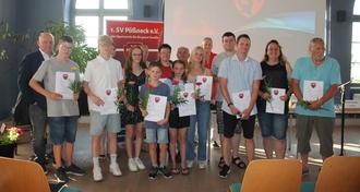 Vor dem Start in die Sommerferien gab es für einzelne Vereinsmitglieder noch mehr Grund zur Freude. Im Rahmen der Jahreshauptversammlung konnte der Vorstand wieder Ehrungen für besondere Leistungen vornehmen. Nachwuchssportlerinnen des Jahres wurden Josephine Wrensch (Ringen), Jill Mattis (Leichtathletik AK 10) sowie Nele Wilhelmi (Volleyball). Als Nachwuchssportler des Jahres wurden Joey Wrensch und Aaron Gottschalk (beide Ringen) sowie Aljosha Samarski (Schach) ausgezeichnet. Carmen Plass und Nico Ziegler (beide Kegeln) dürfen sich seit dem 7. Juli Sportlerin bzw. Sportler des Jahres nennen. Übungsleiterinnen des Jahres sind Kerstin Kaiser (Gerätturnen), Katharina Peth (Orientalischer Tanz) und Nancy Mattis (Leichtathletik).